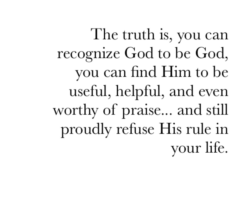 The truth is, you can recognize God to be God, you can find Him to be useful, helpful, and even worthy of praise… and still proudly refuse His rule in your life.