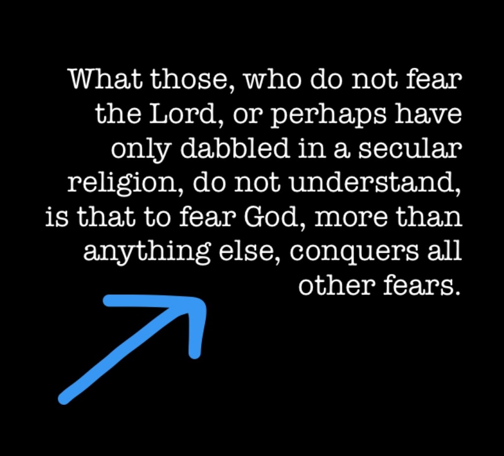 What those, who do not fear the Lord, or perhaps have only dabbled in a secular religion, do not understand, is that to fear God, more than anything else, conquers all other fears.