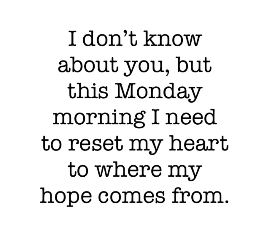 And I don’t know about you, but this Monday morning I need to reset my heart to where my hope comes from.