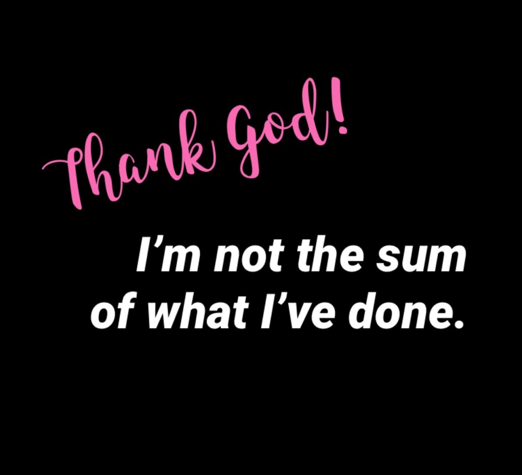 Because of our Savior, we are not the sum of what we have done! And neither are others!!