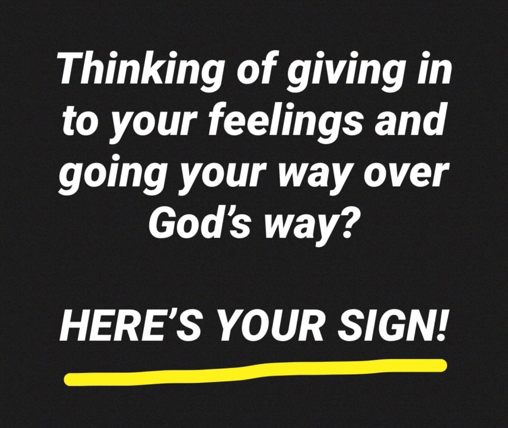 So, if you were thinking of going your way over God’s way, if you are tempted to give in to your feelings over your faith, here’s your sign! DON’T DO IT FRIEND!!