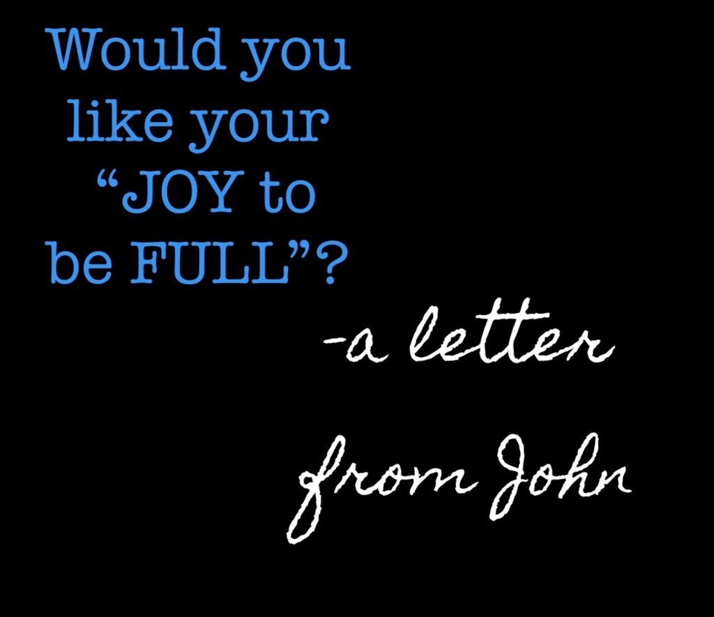 And this letter, I John, are his words written so that our “joy may be full.” (I John 1:4)