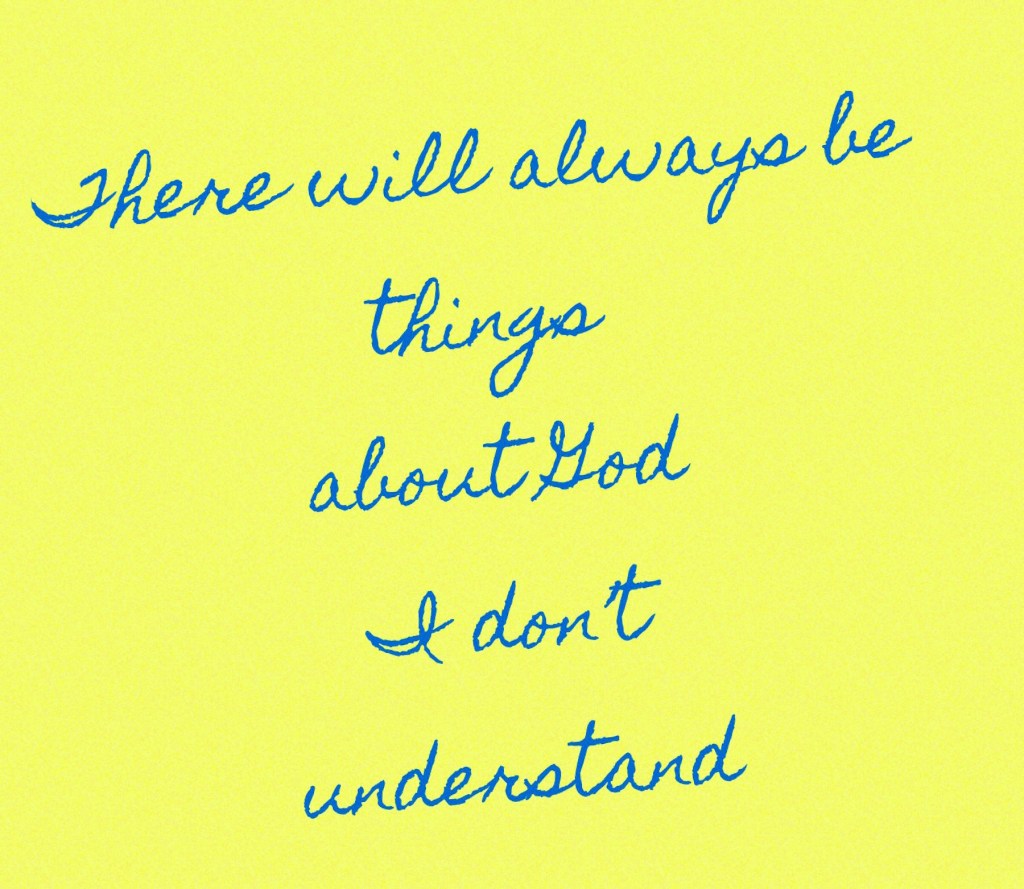 There will always be things about God that I don’t understand. Things I can’t explain.