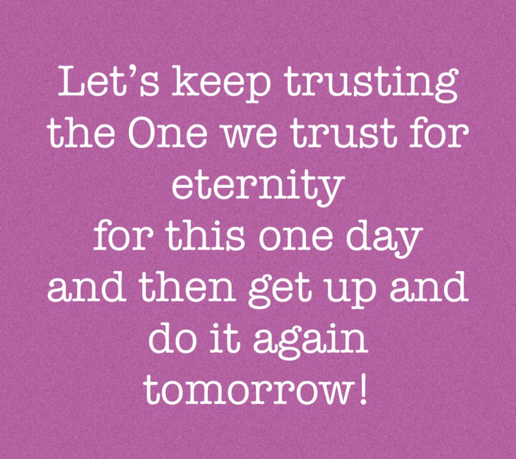 Let’s keep trusting the One we trust for eternity for this one day, and then get up and do it again tomorrow!