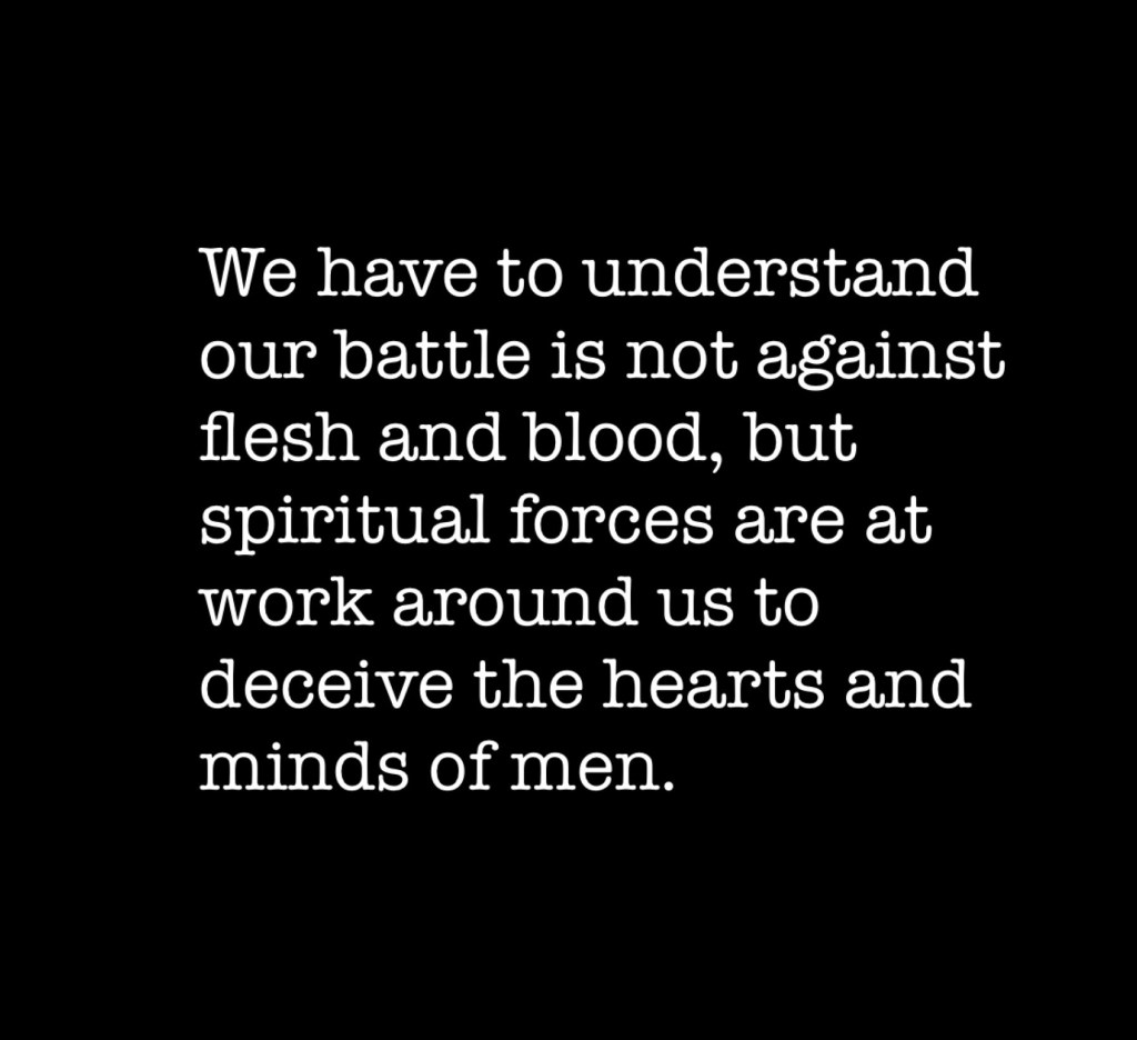 He understood his battle was not against flesh and blood, but that spiritual forces were at work around him to deceive the hearts and minds of men.