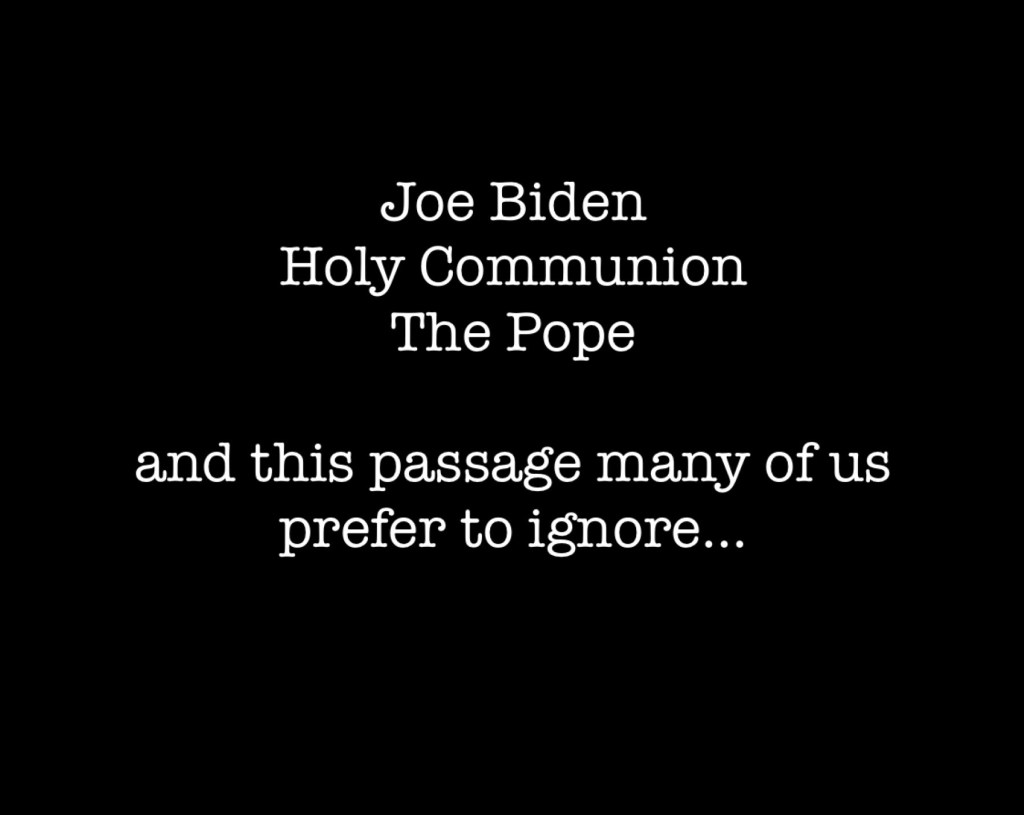 For those of you watching the news, this passage is at the heart of the controversy with Joe Biden, the Pope and some Catholics who say he should be not be given communion therefore indicating he is not in good standing with the church. (I’m not Catholic, just giving some context to this news story).