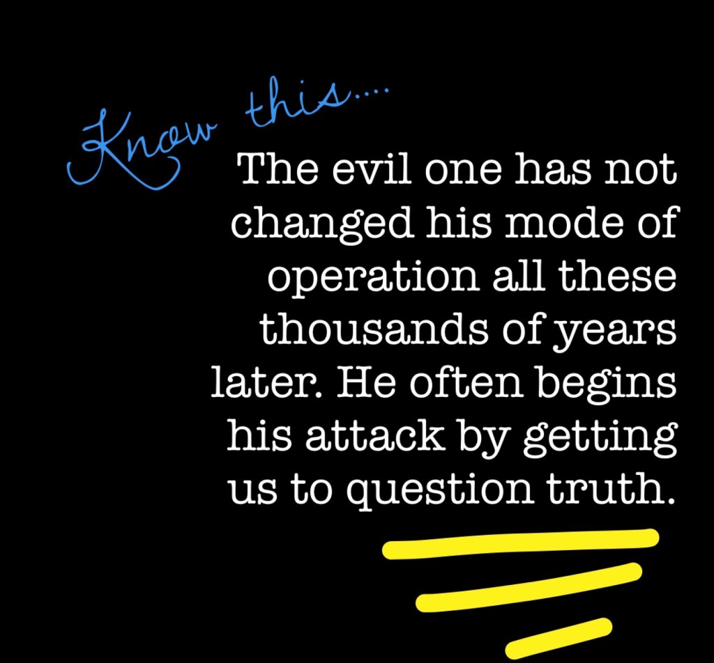 Indeed, the evil one has not changed his mode of operation all these thousands of years later. He often begins his attack by getting us to question truth.