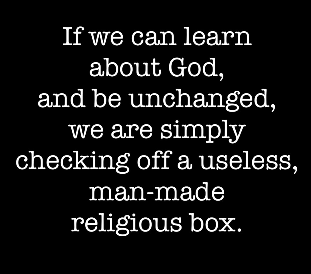 If we can learn about God, and be unchanged, not impacted, we are simply checking off a useless, man-made religious box.