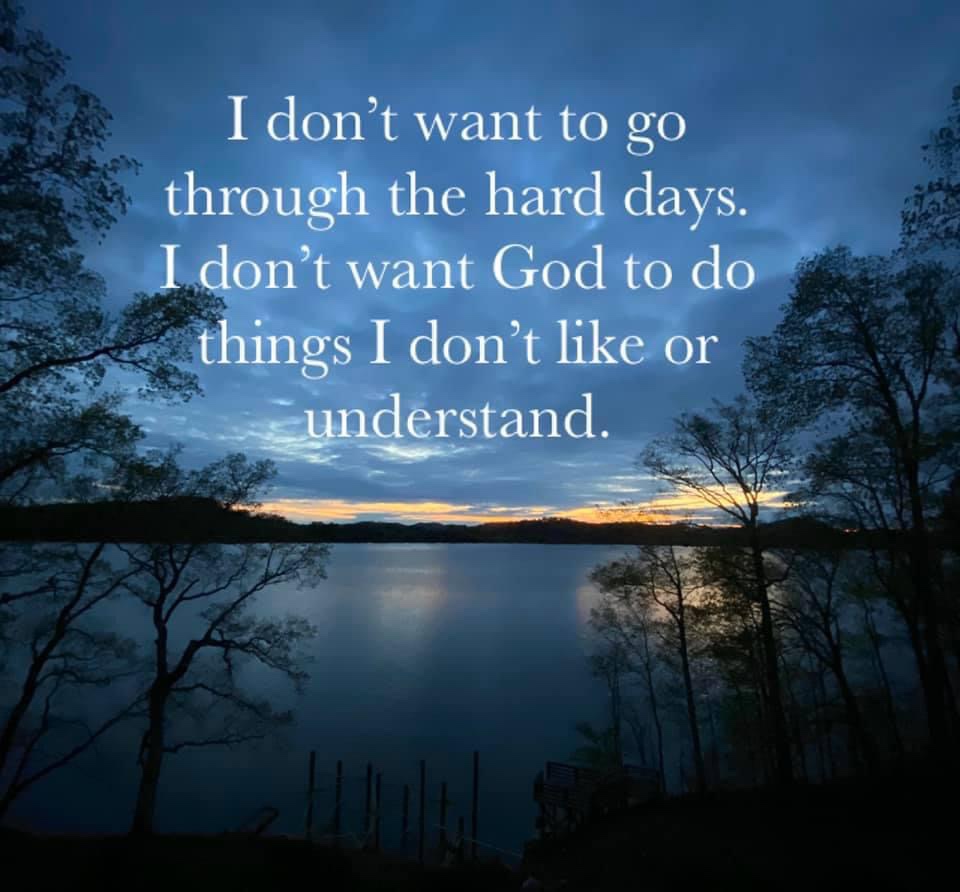 I don’t want to go through the hard days. I don’t want God to do things I don’t like or understand.