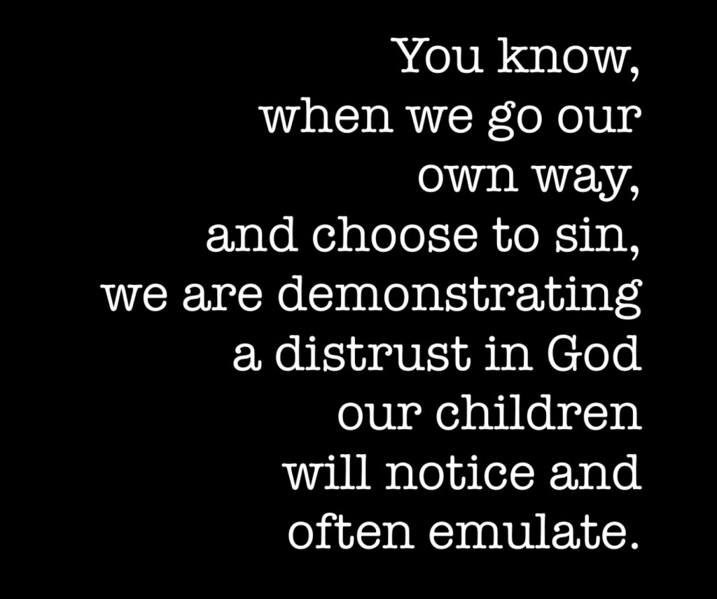 You know, when we go our own way, and choose to sin, we are demonstrating a distrust in God our children will notice and often emulate.