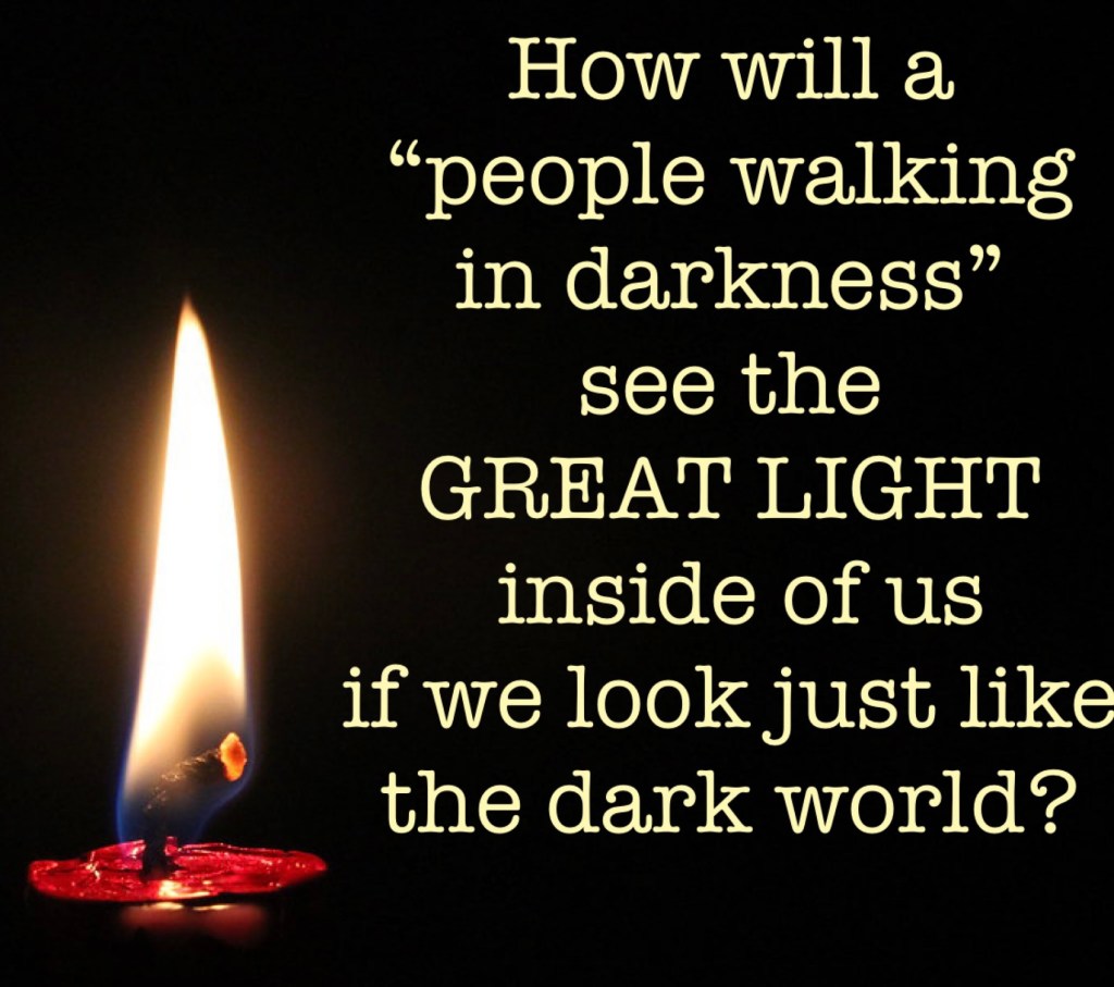 But, let me ask you, how will a “people walking in darkness” see the great light inside of us if we look just like the dark world?