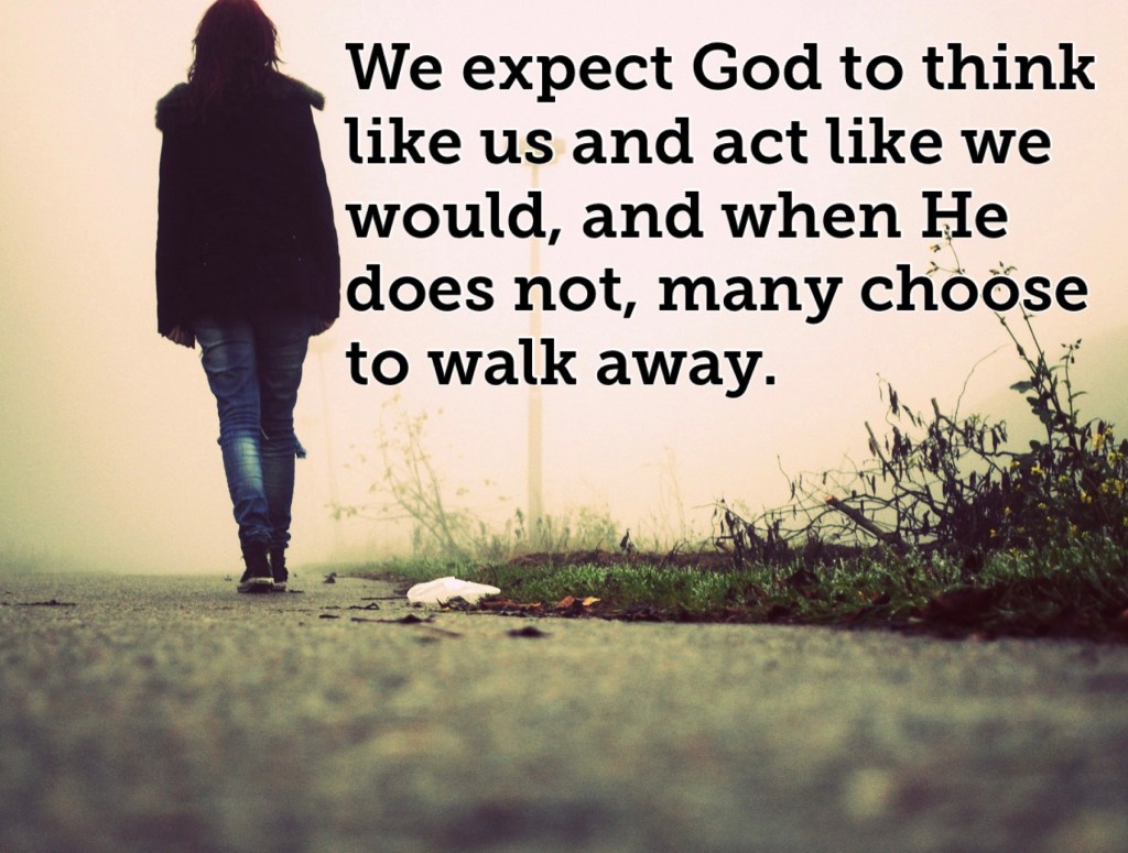 We expect God to think like us and act like we would, and when He does not, many choose to walk away.