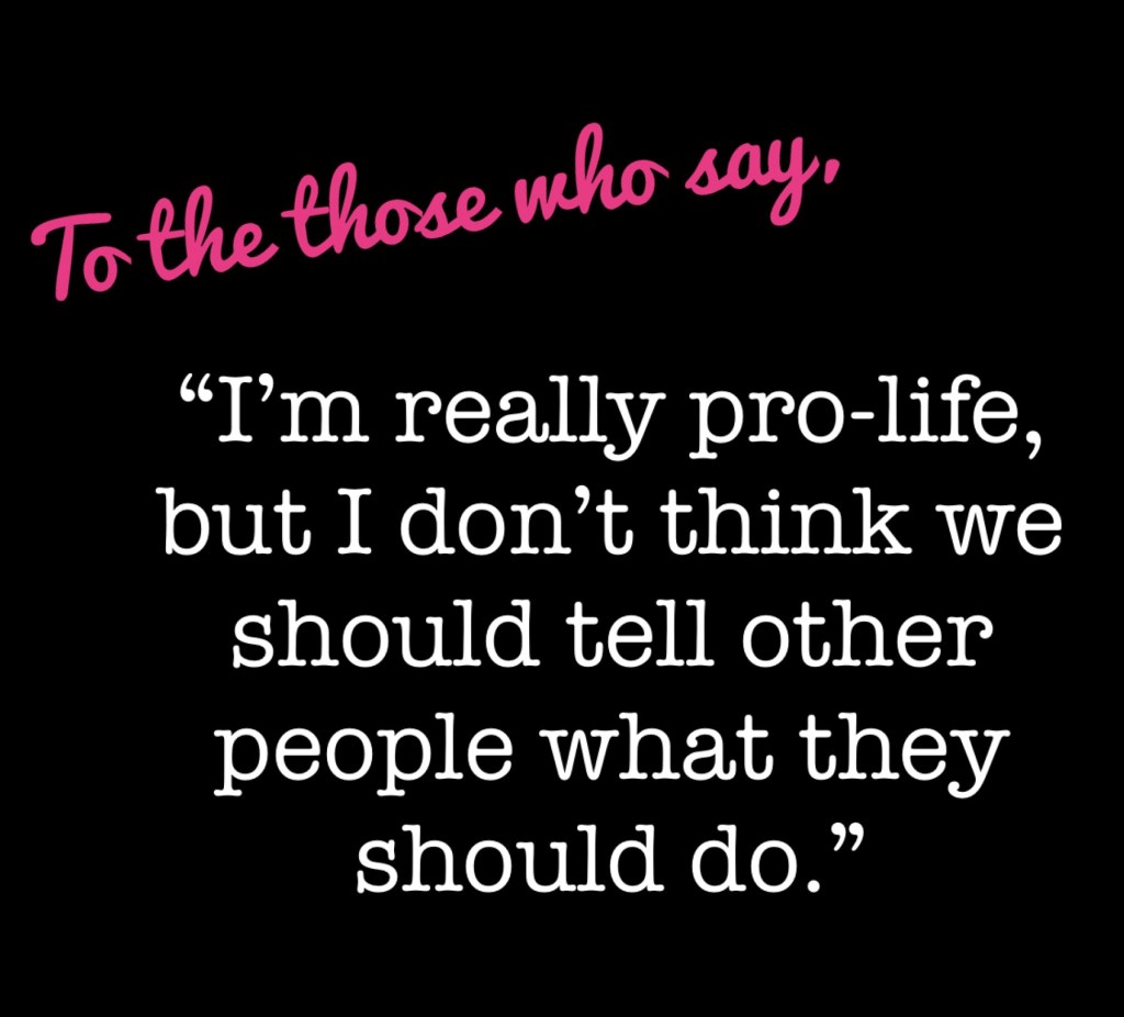 “I’m really pro-life, but I don’t think we should tell other people what they should do.”