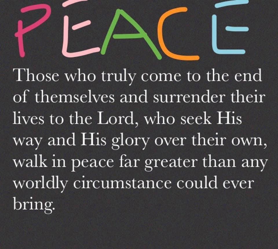 But those who truly come to the end of themselves and surrender their lives to the Lord, who seek His way and His glory over their own, walk in peace far greater than any worldly circumstance could ever bring.