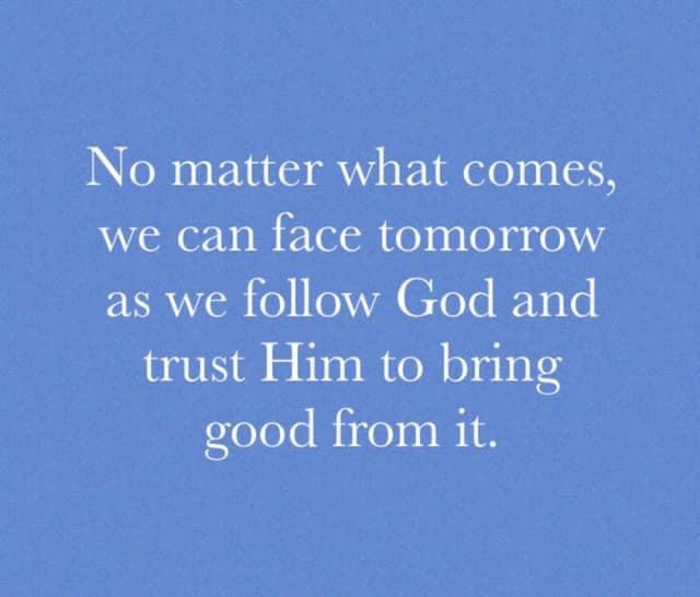 No matter what comes, we can face tomorrow as we follow God and trust Him to bring good from it.