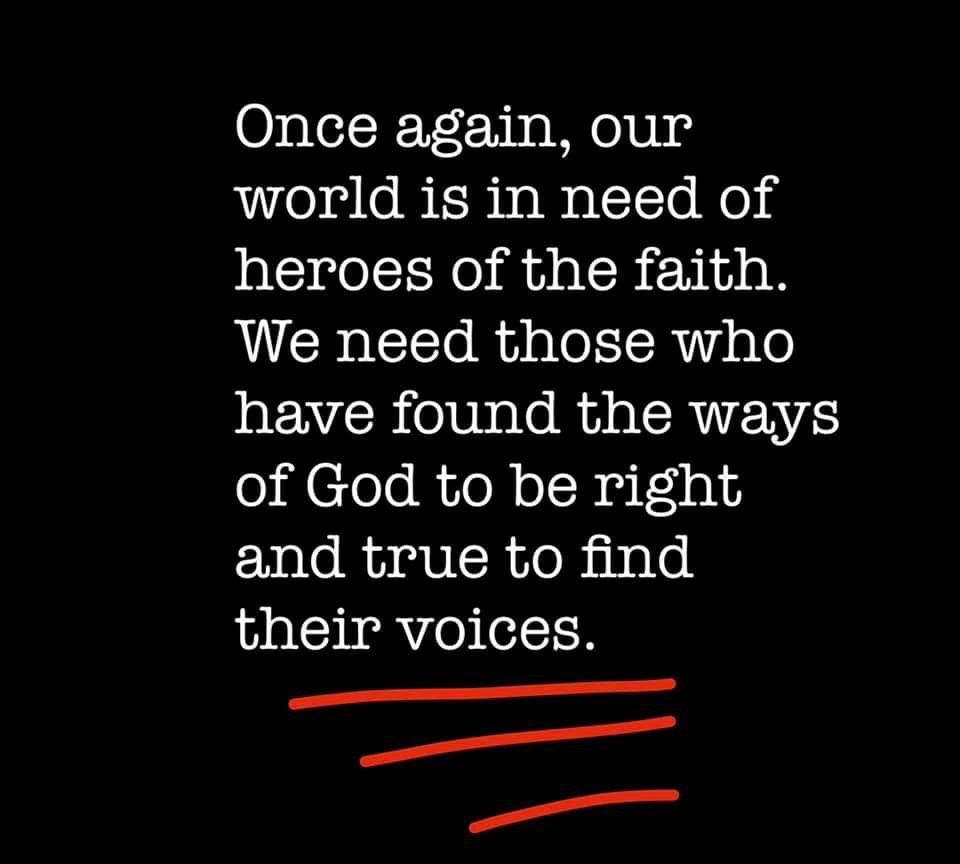And once again, our world is in need of heroes of the faith. We need those who have found the ways of God to be right and true to find their voices.