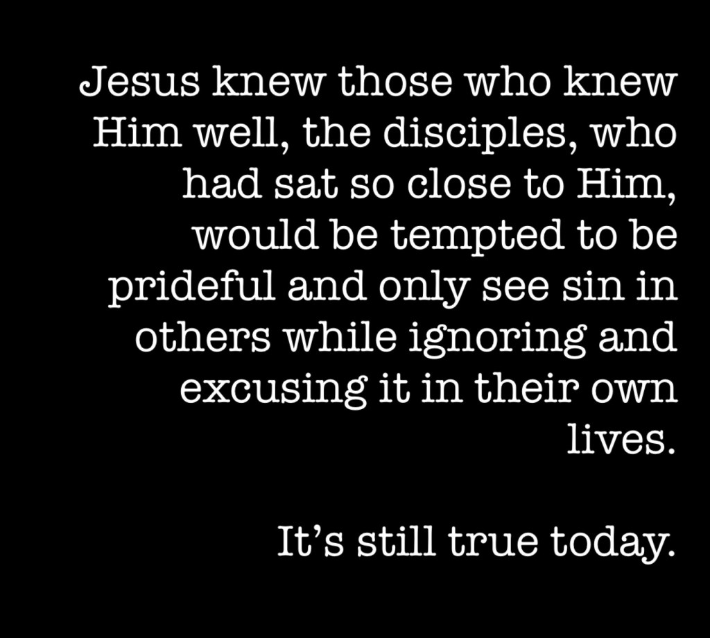 Jesus knew those who knew Him well, who had sat so close to Him, would be tempted to be prideful and only see sin in others while ignoring and excusing it in our own lives.