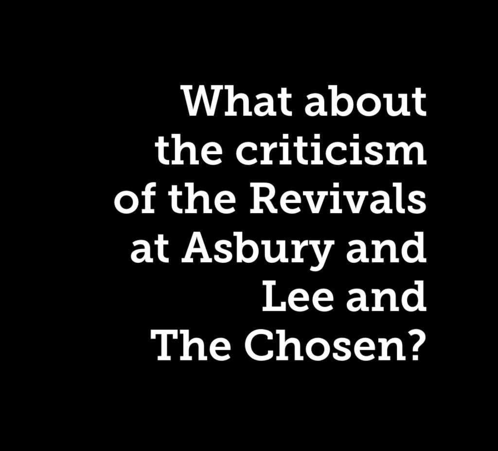 I believe these revivals and The Chosen are drawing people to Christ. Are they being done with complete theological accuracy and integrity? I don’t know.