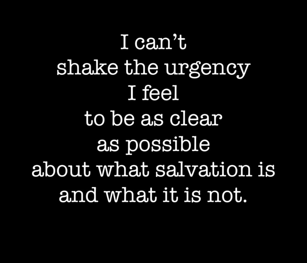 I can’t shake the urgency I feel to be as clear as possible, right now, about what salvation is and what it is not.