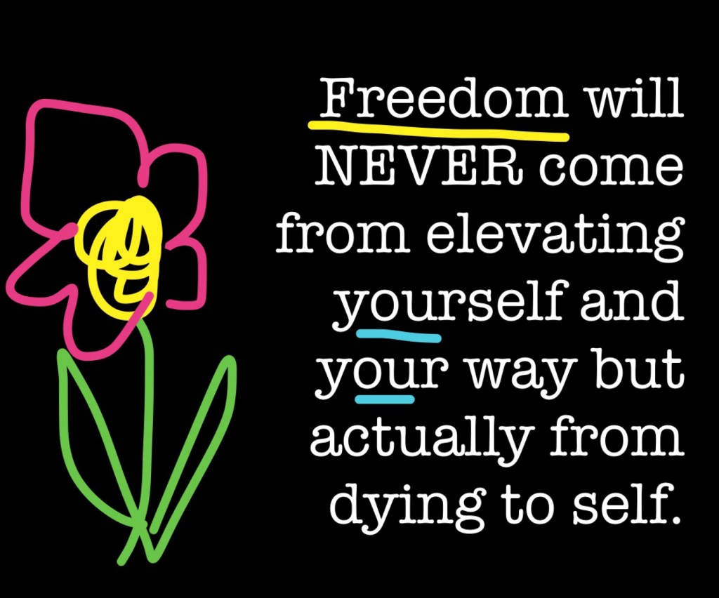 Freedom will NEVER come from elevating yourself and your way but actually from dying to self.