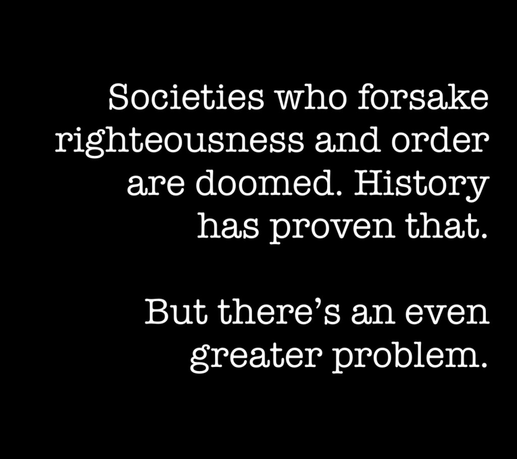 Societies who forsake righteousness and order are doomed. History has proven that.