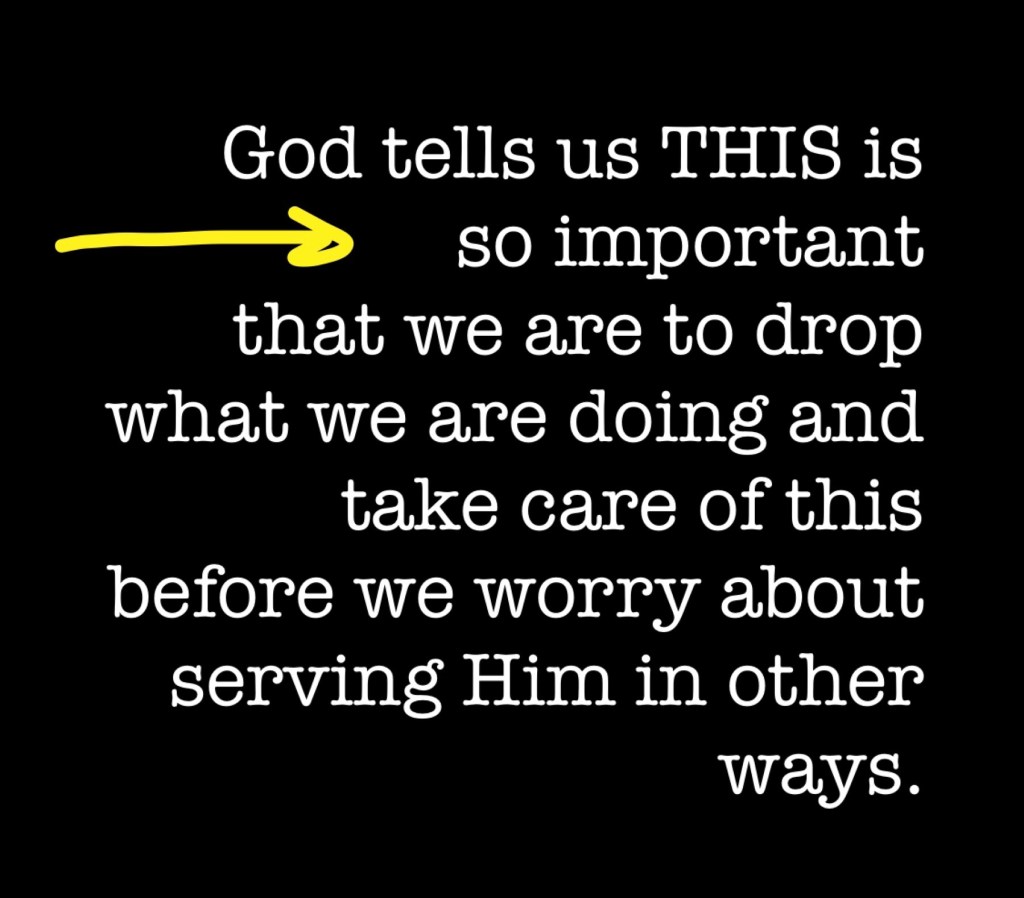 God tells us this is important, so important that it we are to drop what we are doing and take care of this before we worry about serving Him in other ways.