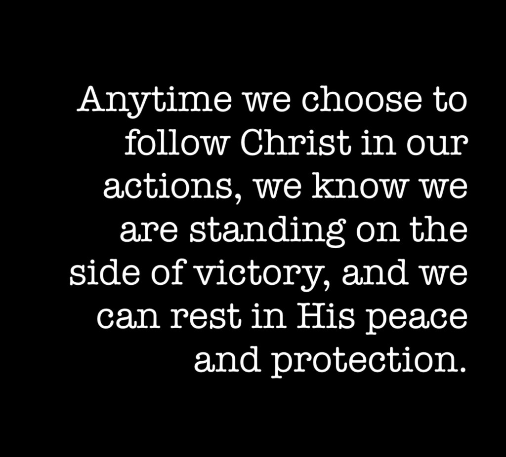 For even if we are treated poorly, if those we are trying to love don’t treat us well, we know we are following our Savior in our actions. He loved the unlovely. He blessed those who cursed Him. And anytime we choose to follow Christ in our actions, we know we are standing on the side of victory, and we can rest in His peace and protection.