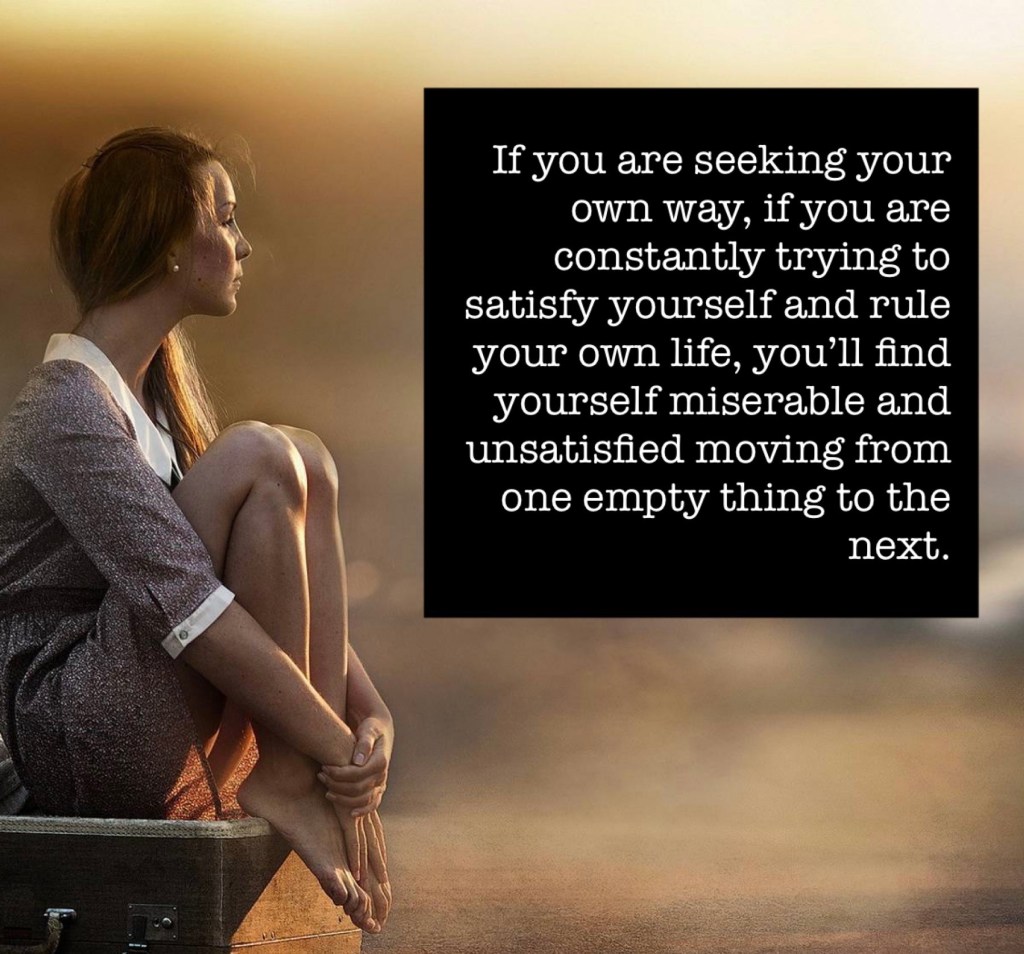 But if you are seeking your own way, if you are constantly trying to satisfy yourself and rule your own life, you’ll find yourself miserable and unsatisfied moving from one empty thing to the next.