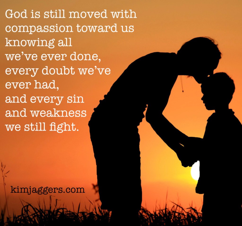 He is still “moved with compassion” (Matt 14:14) toward me and toward you today knowing all we’ve ever done, every doubt we’ve ever had, and every sin and weakness we still fight.