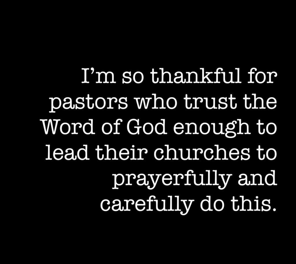 And churches need to care enough about their flock to invoke church discipline when warranted. Is that a popular, fill the pew, kind of statement? No. But I’m so thankful for pastors who trust the Word of God enough to lead their churches to prayerfully and carefully do this.