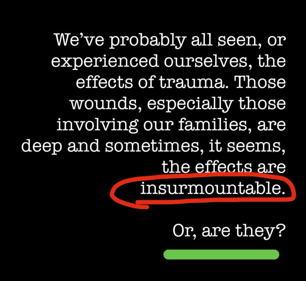 We’ve probably all seen, or experienced ourselves, the effects of trauma, especially childhood trauma. Those wounds are deep and sometimes, it seems, the effects are insurmountable.
