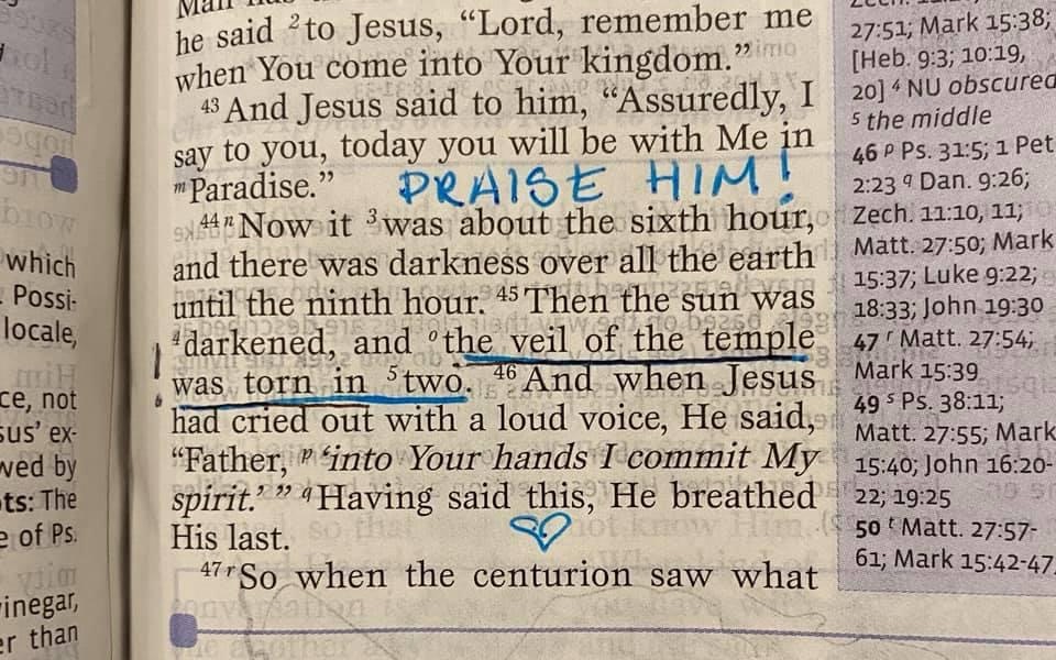 Praise His Holy Name! For that curtain, separating God and man is torn in two!!!