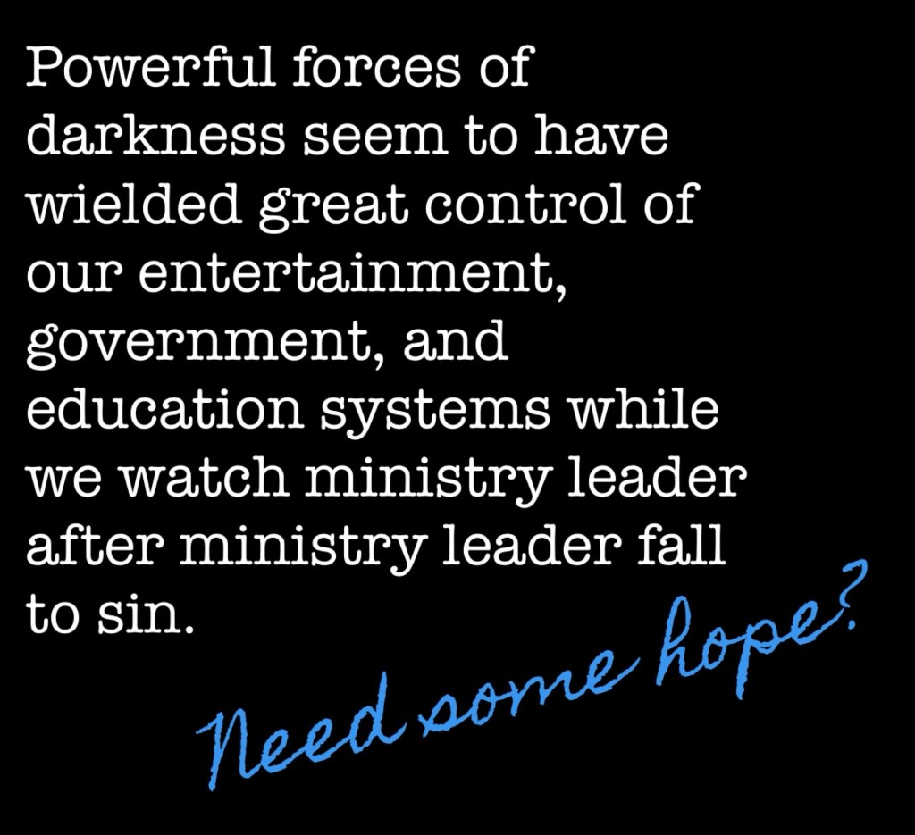 Powerful forces of darkness seem to have wielded great control of our entertainment, government, and education systems while we watch ministry leader, after ministry leader, fall to sin.
