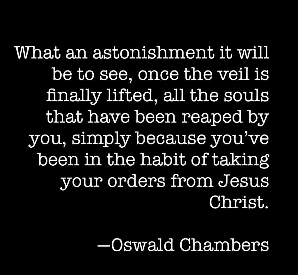 “What an astonishment it will be to see, once the veil is finally lifted, all the souls that have been reaped by you, simply because you’ve been in the habit of taking your orders from Jesus Christ.”