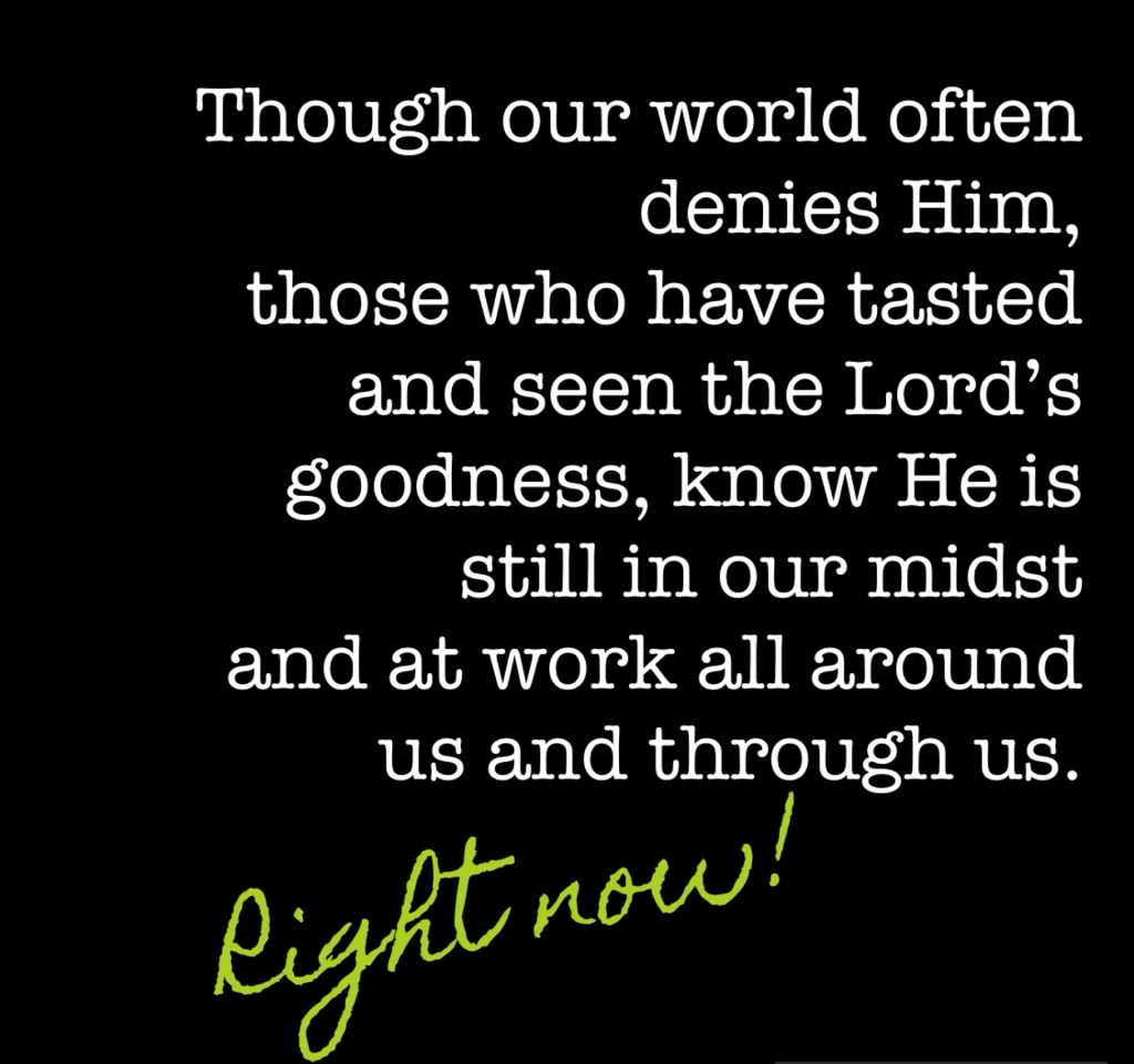 Though our world often denies Him, those who have tasted and seen the Lord’s goodness know He is still in our midst and at work all around us and through us.