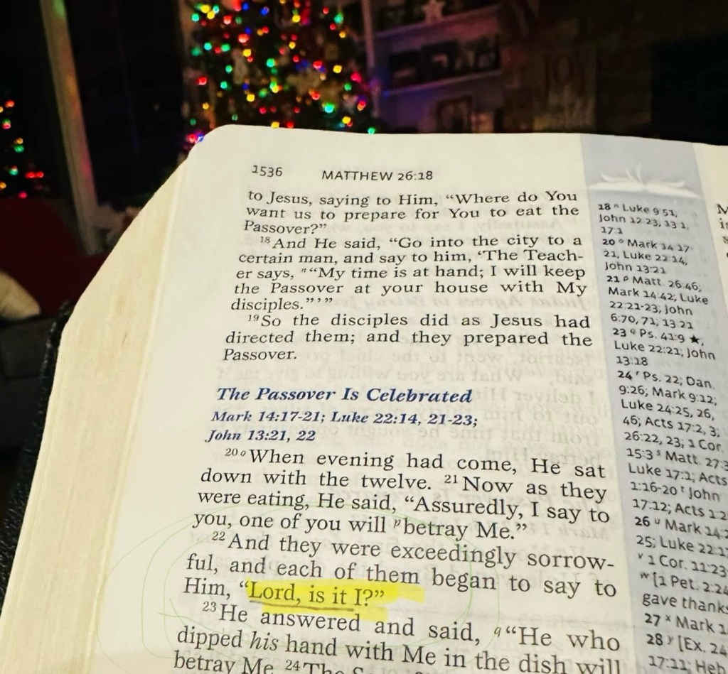 “And they were exceedingly sorrowful, and each of them began to say to Him, “Lord, is it I?” (Matt 26:22)