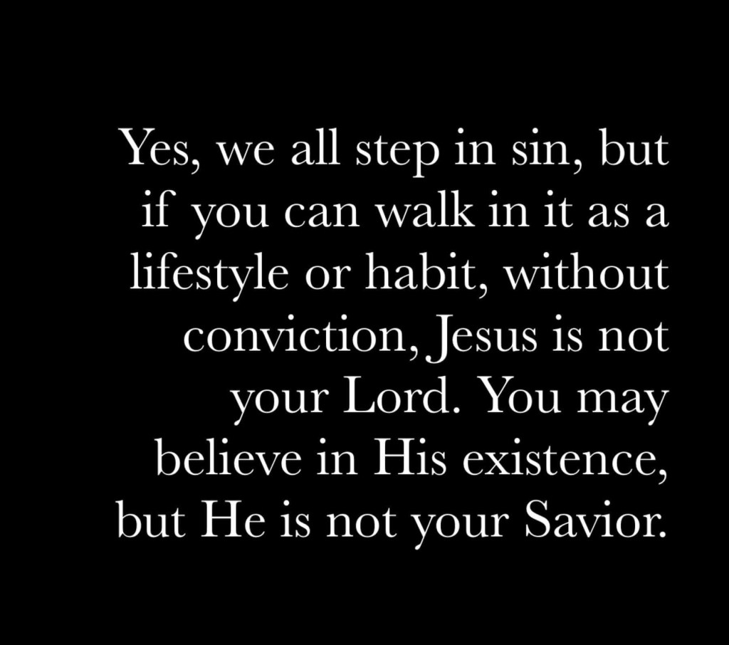 Yes, we all step in sin, but if you can walk in it as a lifestyle or habit, without conviction, Jesus is not your Lord. You may believe in His existence, but He is not your Savior.