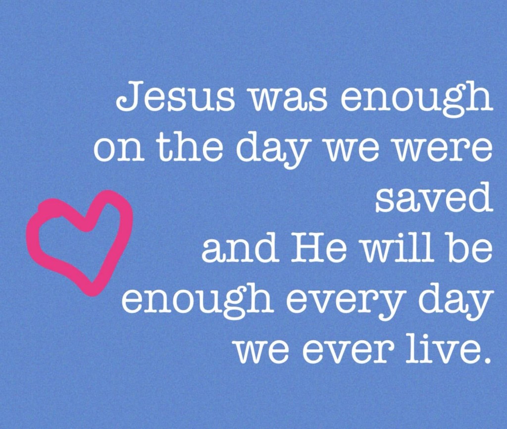 Jesus was enough on the day we were saved, and He will be enough every day we ever live.