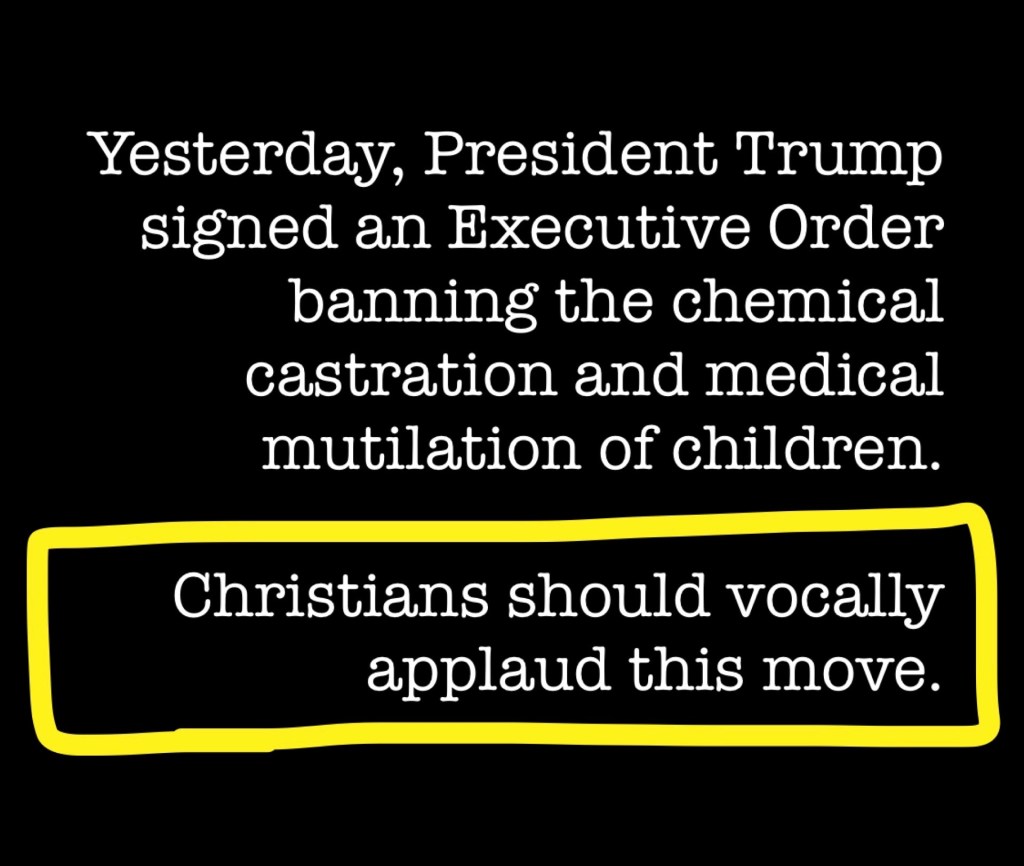 Yesterday, President Trump signed an Executive Order banning the chemical castration and medical mutilation of children.