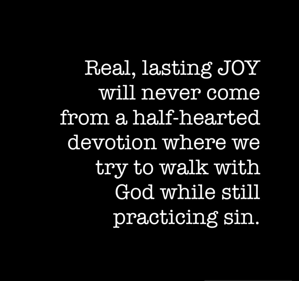 Lasting JOY will never come from half-hearted devotion & walking in sin.