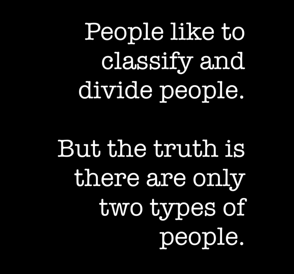 We humans like to classify and divide people due to financial status, skin color, political party, gender, and on and on.