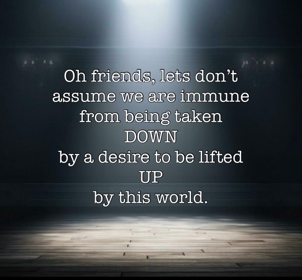 Furthermore, let’s don’t assume we are immune from being taken down by a desire to be lifted up by this world.