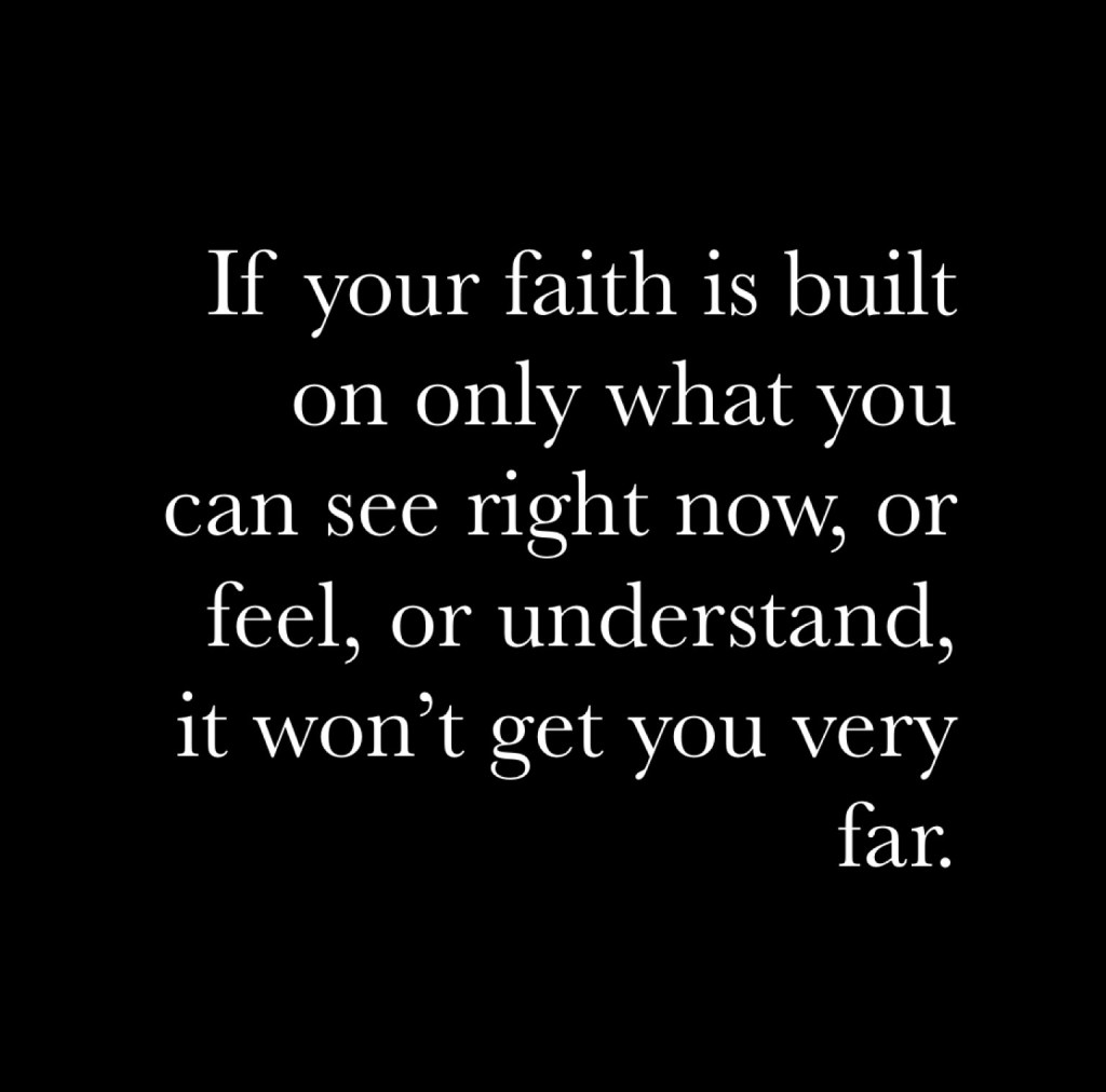 If your faith is built on only what you can see right now, or feel, or understand, it won’t get you very far.