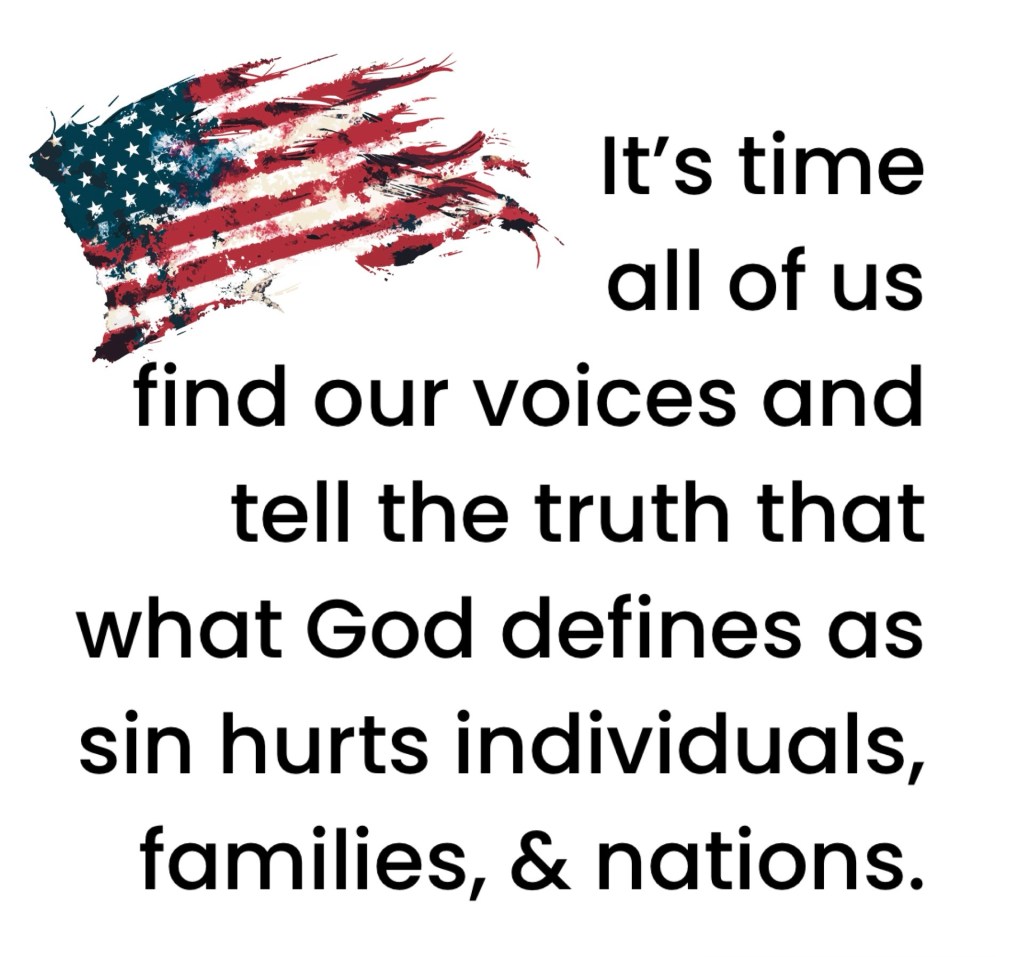 It’s time all of us find our voices and tell the truth that what God defines as sin hurts individuals, families and nations.