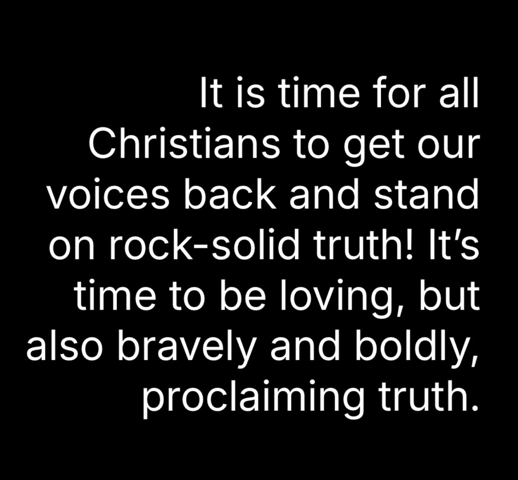 It is time for all Christians to get our voices back and stand on rock-solid truth! It’s time to be loving, but also bravely and boldly, proclaiming truth.