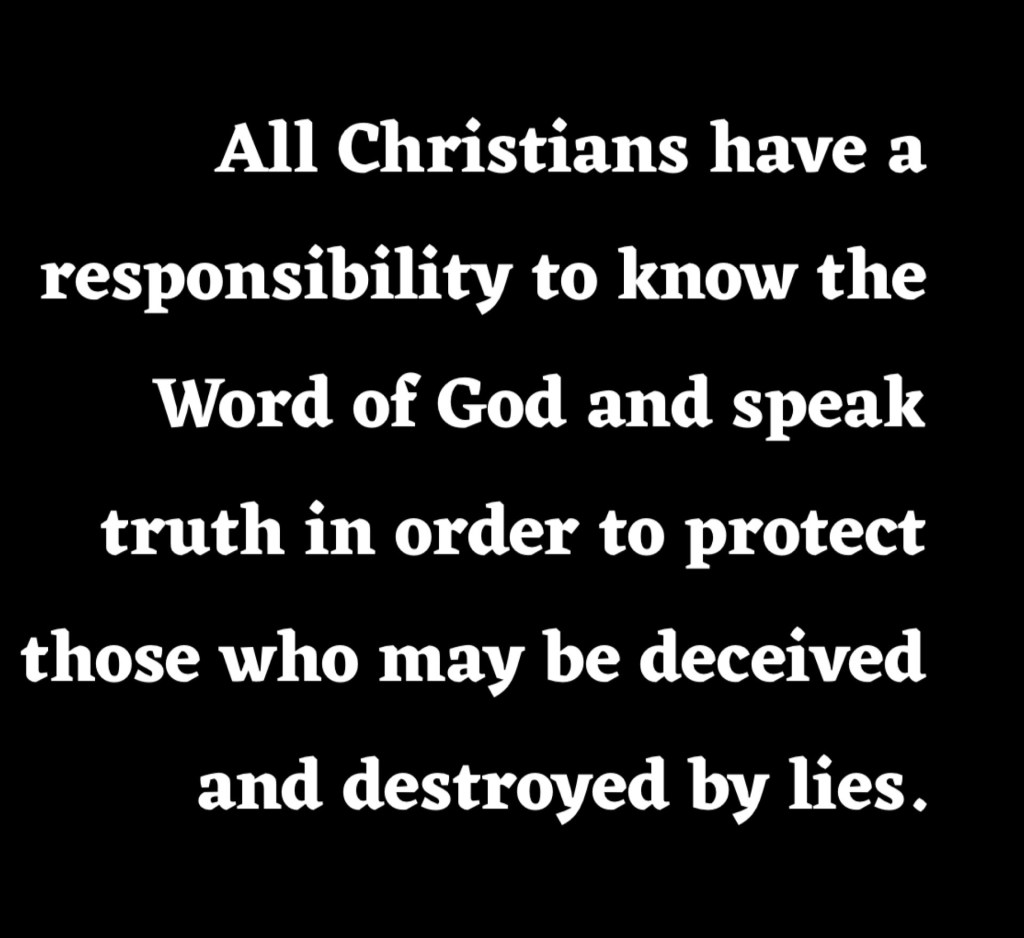 All Christians have a responsibility to know the Word of God and speak truth in order to protect those who may be deceived and destroyed by lies.