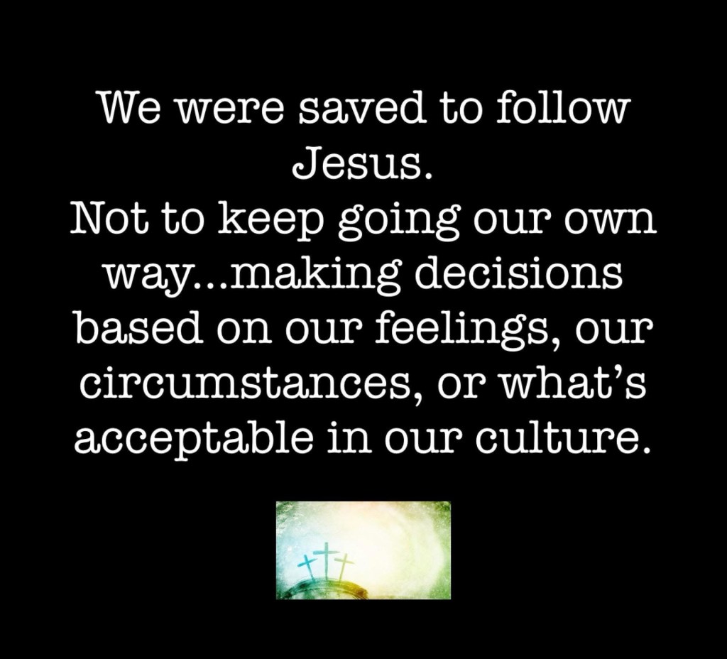We were saved to follow Jesus. Not to keep going our own way…making decisions based on our feelings, our circumstances, or what’s acceptable in our culture.