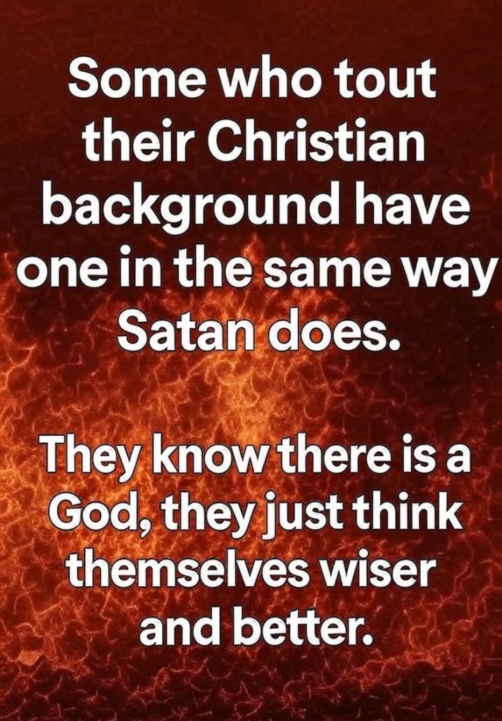 Let’s understand, let’s be on guard, because some who tout their Christian background have one in the same way Satan does—they know there is a God, they just think themselves wiser and better.