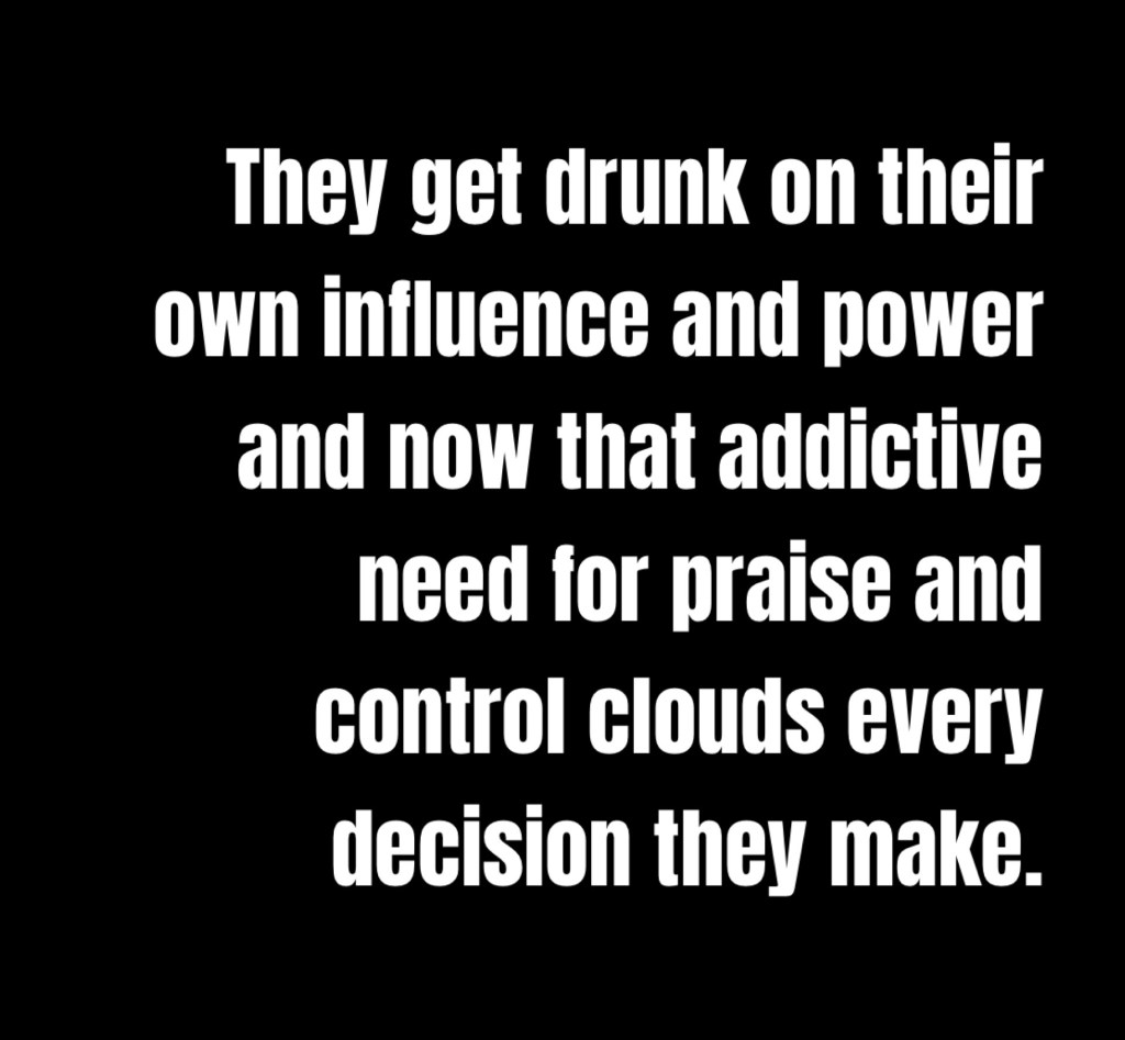 They get drunk on their own influence and power and now that addictive need for praise and control clouds every decision they make.