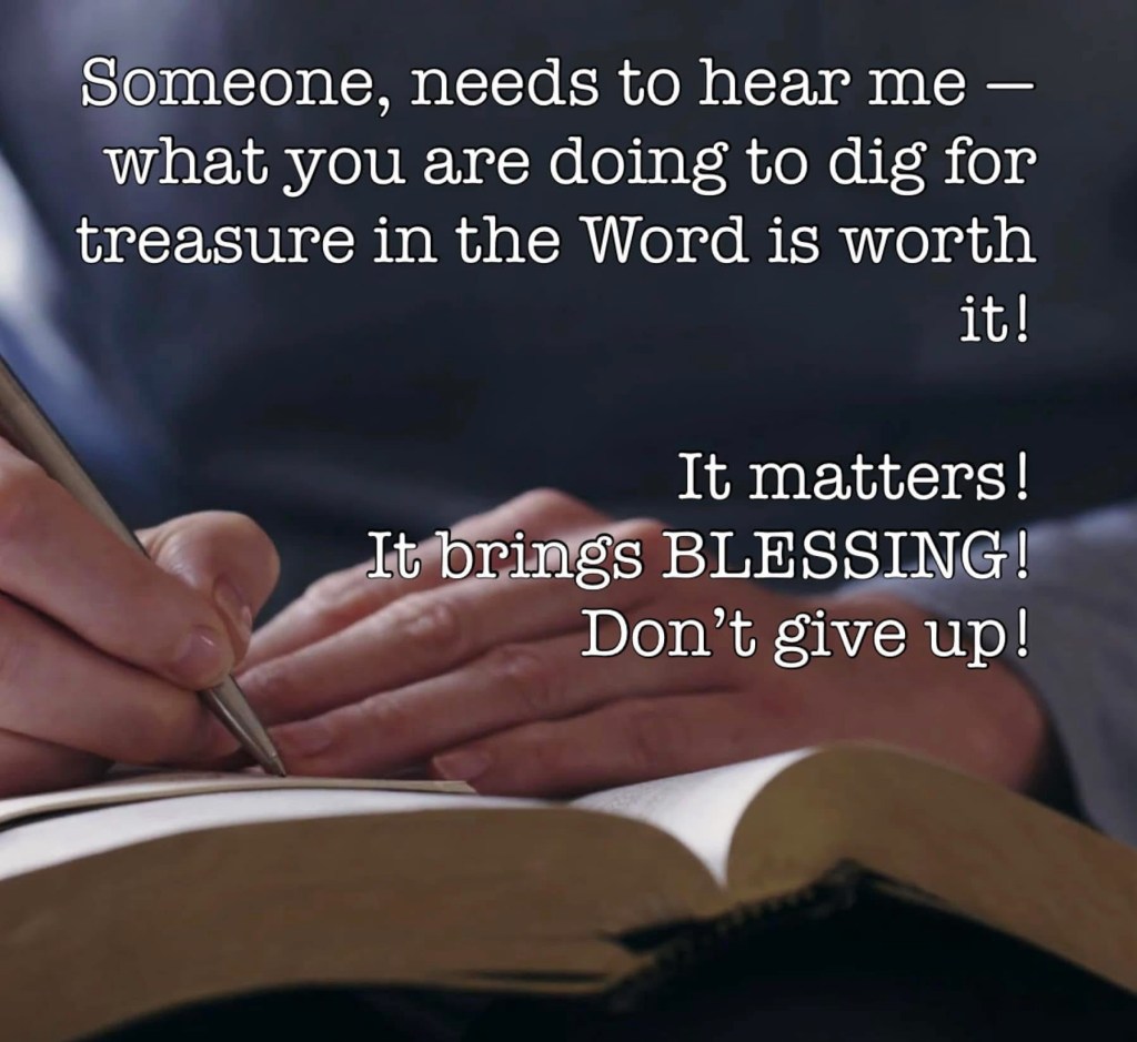 Someone, needs to hear me —what you are doing to dig for treasure in the Word is worth it!